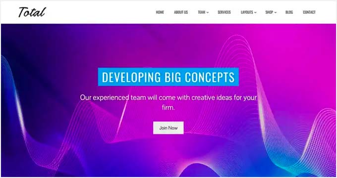 Total is a powerful free WordPress business theme, expertly designed to meet the demands of corporate websites. It comes equipped with essential sections like "About Us," featured content, dedicated portfolio showcases, services offerings, and client testimonials.