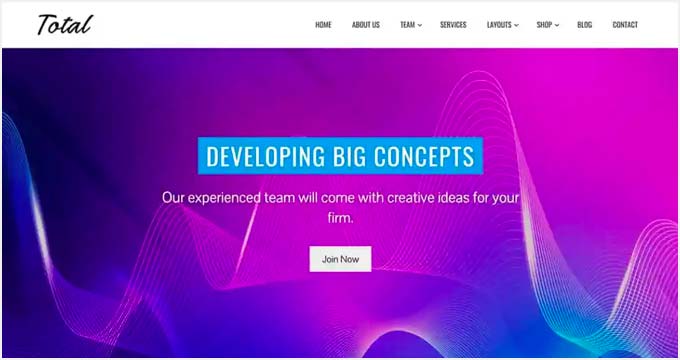Total is a free WordPress theme, making it an excellent choice for small businesses or startups operating on a bootstrap budget. It offers a clean and simple layout, ideal for showcasing your products and services effectively.